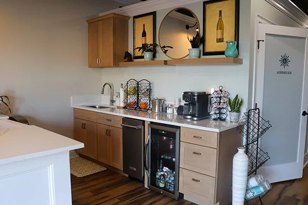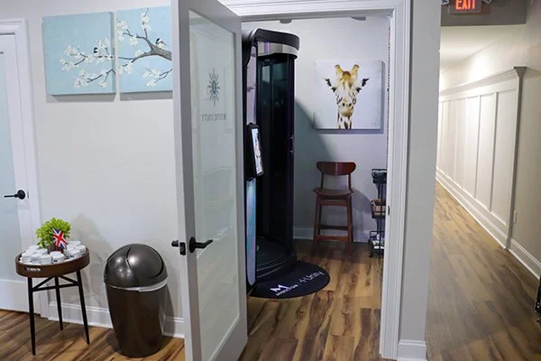 Your glow-up should feel as good as it looks, so we sought to create a space to relax, enjoy a complimentary drink, and take a moment for yourself before your tanning session. It’s all part of the Be tan - I am experience.